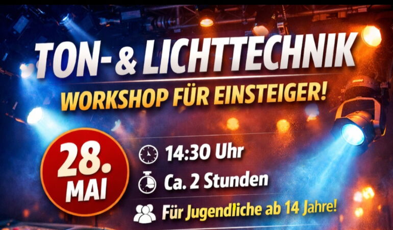 Du wolltest schon immer mal wissen, wie Konzerte, Theateraufführungen und andere Bühnenproduktionen zum Leben erweckt werden und welche Technik dafür bedient werden muss? Dann bist du bei unserem nächsten Workshop genau richtig.