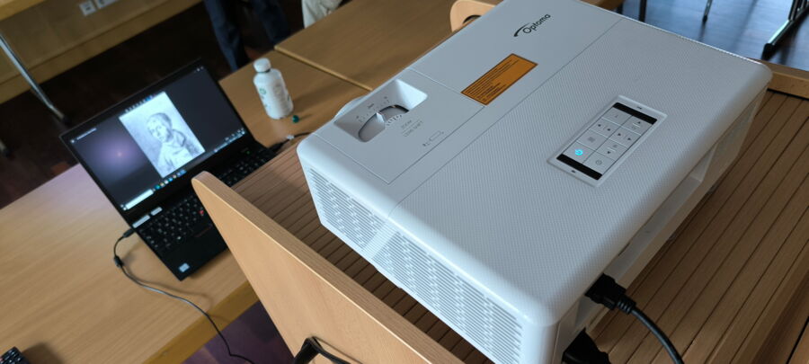 Unser 5.000 ANSI-Lumen Laser-Beamer konnte selbst bei Tageslicht mit ein paar Einstellungen kraftvolle Bilder des Künstlers an die Leinwand projizieren.